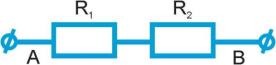 Խնդիր 5. Որոշեք նկարում պատկերված շղթայի տեղամասի դիմադրությունը, եթե միմյանց միացված ռեզիստորների դիմադրությունները համապատասխանաբար հավասար են՝ R1 = 6 Օմ, իսկ R2 = 8 Օմ: