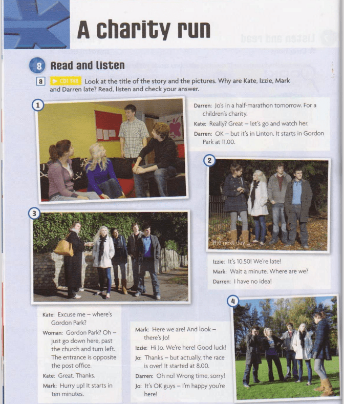New words-tomoroww-today-yestoday-charity-we are late-church-turn left-entrance-post office-Here we are-Good luck-actually-over.