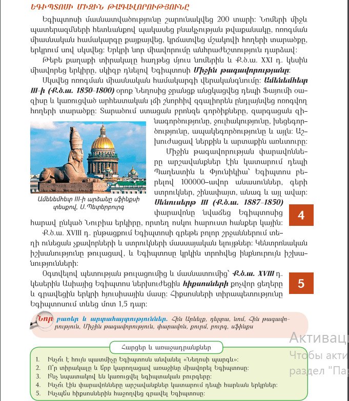 Հին Եգիպտոսի քաղաքակրթության արշալույսը/էջ 12-13-ը պատմել, էջ 13-ի հարցերը գրավոր: