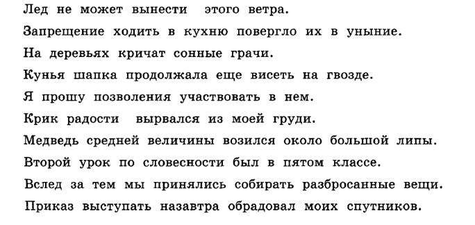 1)Мир освещается солнцем, а человек знанием. 2) Ложь стоит на одной ноге, правда на двух. 3) Мудрец обвиняет себя, невежда других. 4) Змея один раз меняет кожу, а предатель каждый день. 5) Писателю необходима смелость в обращении со словами и запасом своих наблюдений, скульптору с глиной и мрамором, художнику с красками и линиями. (К.Г. Паустовский.) 6) Позади была только что перейденная отрядом быстрая чистая речка, впереди обработанные поля и луга с неглубокими балками, еще впереди таинственные черные горы, покрытые лесом, за черными горами еще выступающие скалы, а на самом высоком горизонте вечно прелестные, вечно изменяющиеся, играющие светом, как алмазы, снеговые горы. (Л. Толстой.)