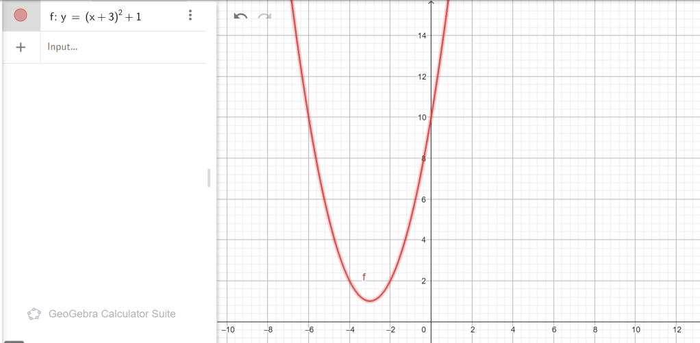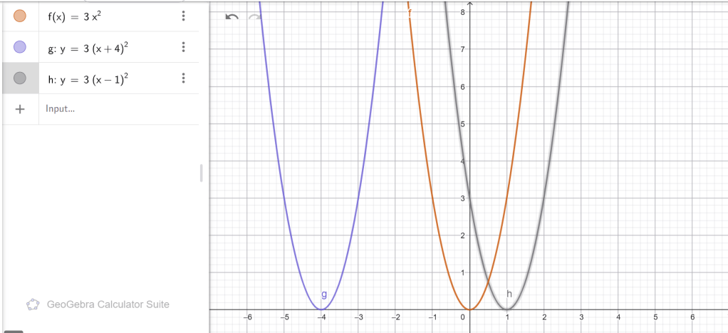 1) f(x) = x2 ֆունկցիայի գրաֆիկը 3 միավորով աջ տեղաշարժելով՝ կստանանք f(x−3) = (x−3)2 ֆունկցիայի գրաֆիկը: Այն (3, 0) գագաթով պարաբոլ է ։