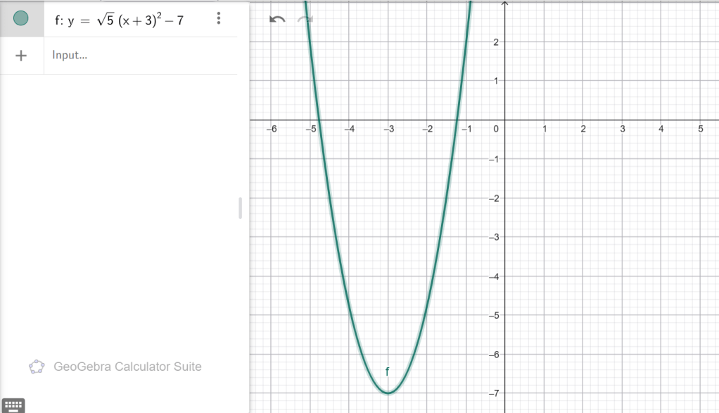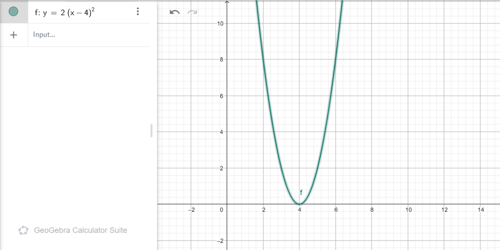 Ամփոփենք. y = 2(x − 3)2 + 7 ֆունկցիայի գրաֆիկը y-ների առանցքի երկայնքով 2 անգամ ձգած պարաբոլ է, որի գագաթը (3, 7) կետն է։