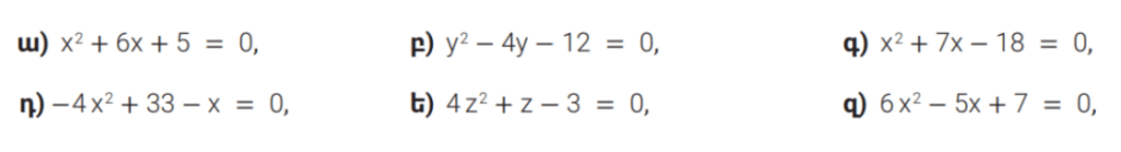 ա) 2x2 + 7x − 1, բ) −x2 + 3x − 9, գ) − x2 − 6x − 9։